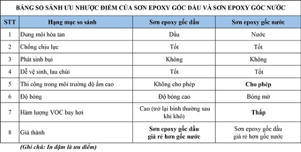2. So Sánh Sơn Epoxy Gốc Nước Với Sơn Epoxy Gốc Dầu
